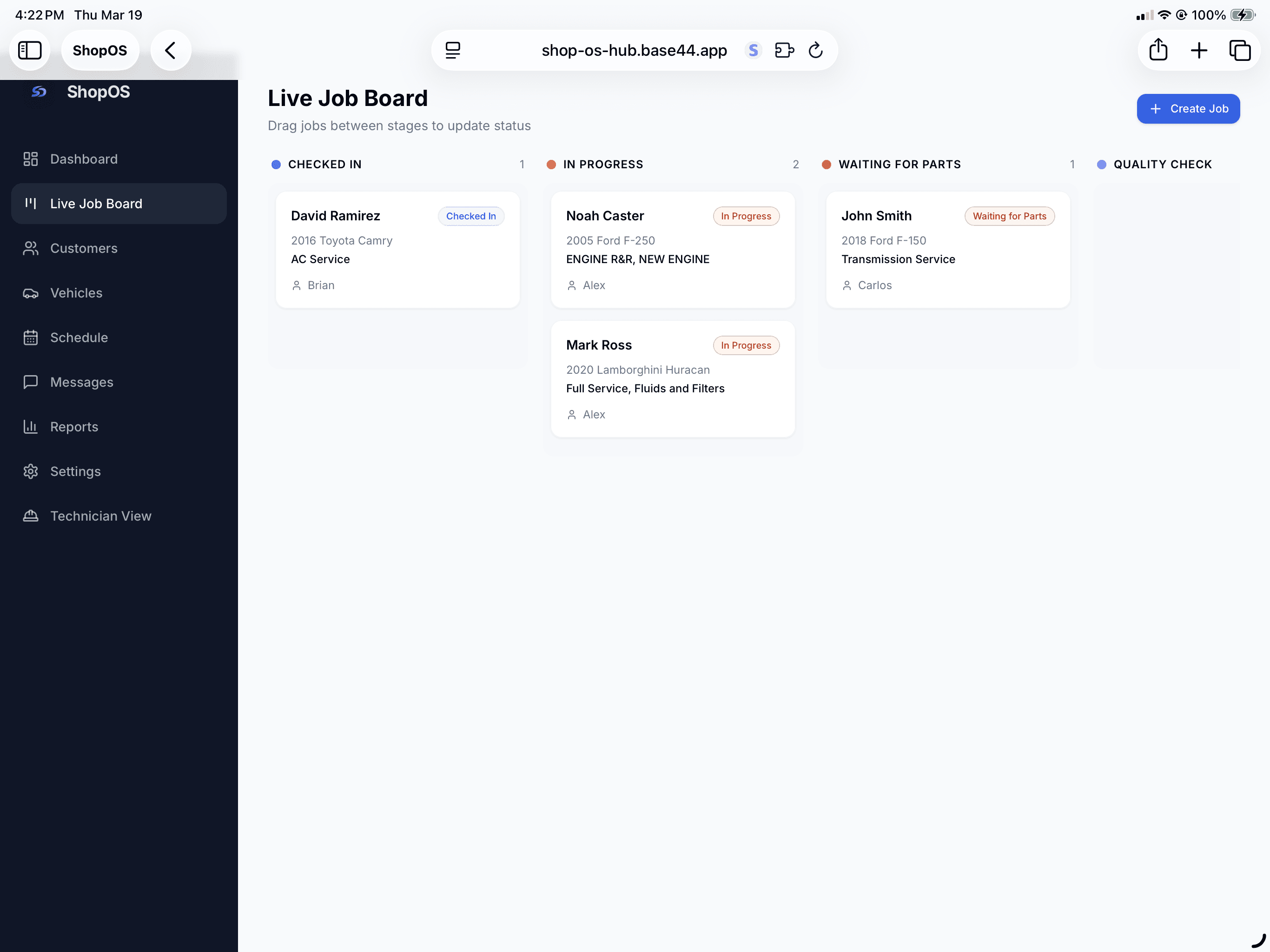 ShopOS is designed for auto repair shops that want a simpler way to manage jobs, customers, and communication.